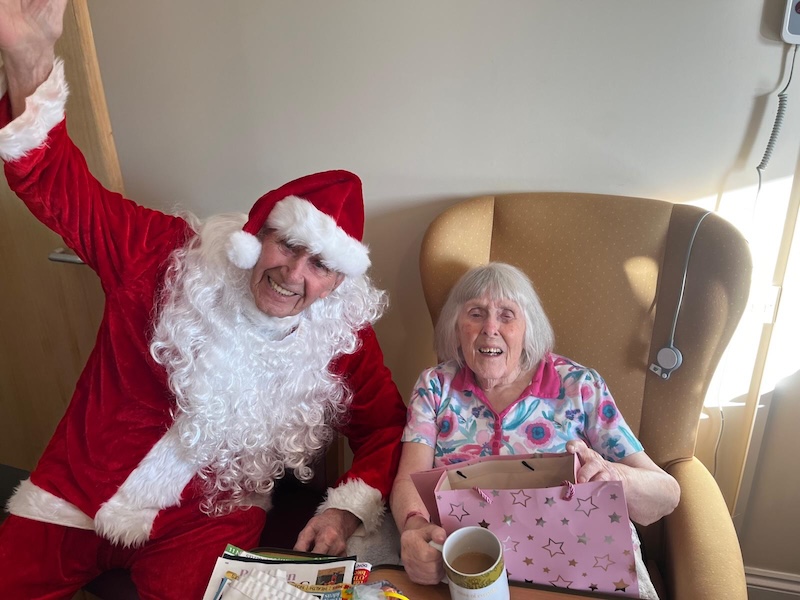 With a sack of presents in hand and a sparkle in his eye, Ray visited residents throughout the home, delivering laughter and festive cheer to every room. His Santa voice was second to none, echoing joyfully along the corridors as he sang Jingle Bells and chatted with friends old and new. Smiles spread quickly, hands clapped along to the music and the atmosphere became one of pure togetherness. It was one of those moments where time seemed to slow, allowing everyone to just enjoy being present.